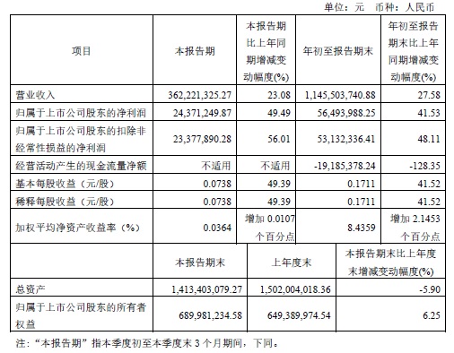 寶光股份2023年三季度主要會計(jì)數(shù)據(jù)和財(cái)務(wù)指標(biāo)